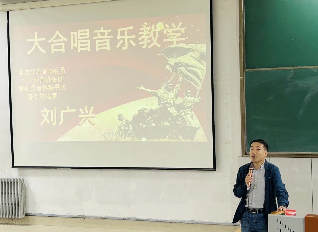 首先,刘广兴老师对大合唱队形做出相应调整,使合唱队形整齐划一而又层次分明。接着,刘老师从合唱的个人特色与团队和谐的平衡、发声技巧与呼吸控制、作品内涵与情感表达等方面进行深入指导。高超的艺术造诣深深感染着每一位队员,在刘老师的指导下,队员们表现出极高的学习热情,得到刘老师的高度认可。同时,专业的舞蹈老师根据铁人故事进行编舞,使舞蹈表演更加有力度、有情感。最后,刘老师指明朗诵中存在的问题,强调停顿、重音、语速、语调等技巧,经过指导后的朗诵更加抑扬顿挫、气势磅礴。