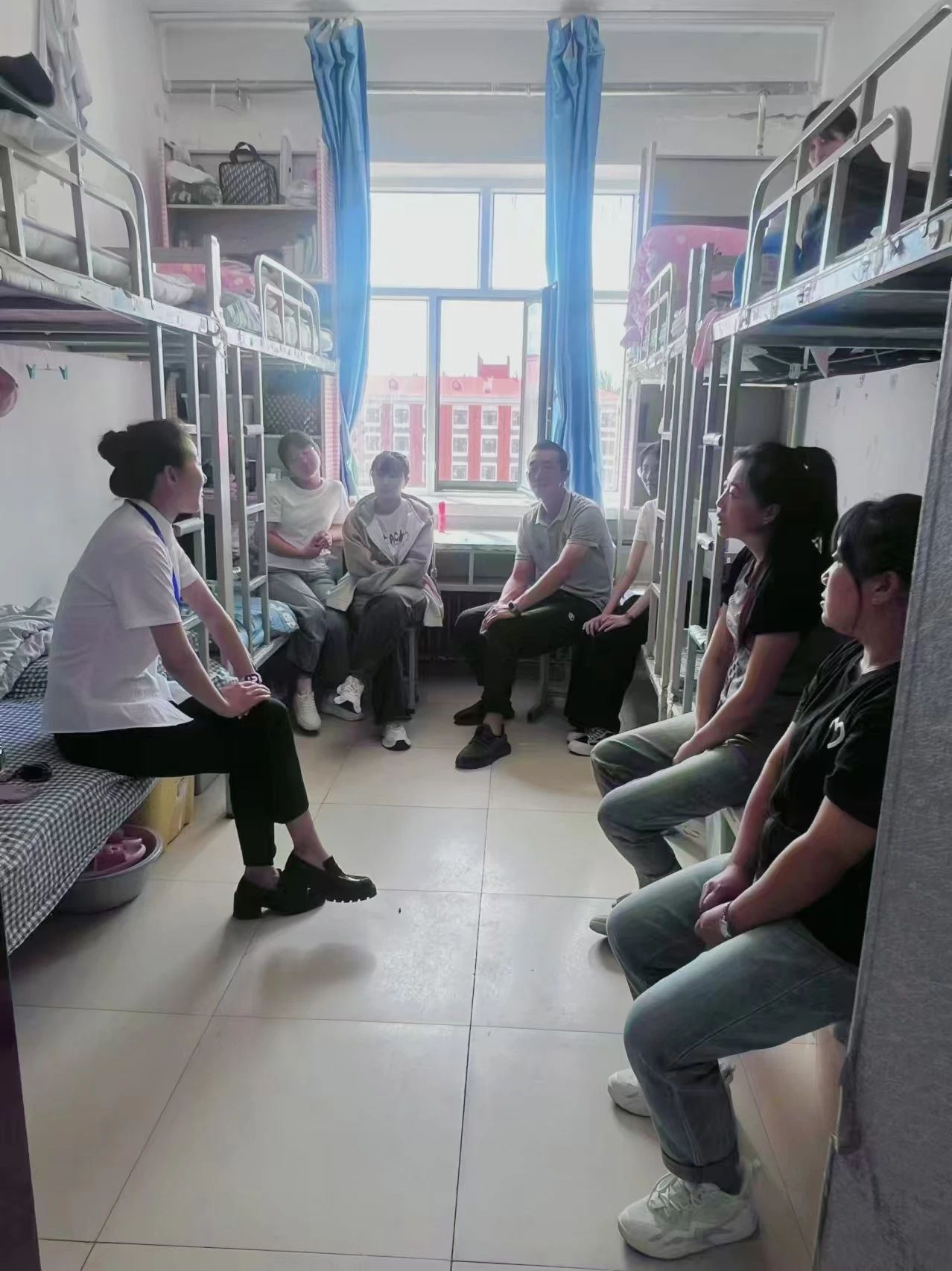 骄阳烈烈汗如雨,军姿飒飒意如钢。为深入掌握同学们的生活现状与思想变化,助力员工更快融入新学期的学习与生活节奏,张玲老师、金天坤老师、白旭亚老师和夏丽娜老师一同带着深切的关怀走进新生寝室走访慰问,对员工们尽显关爱之情。