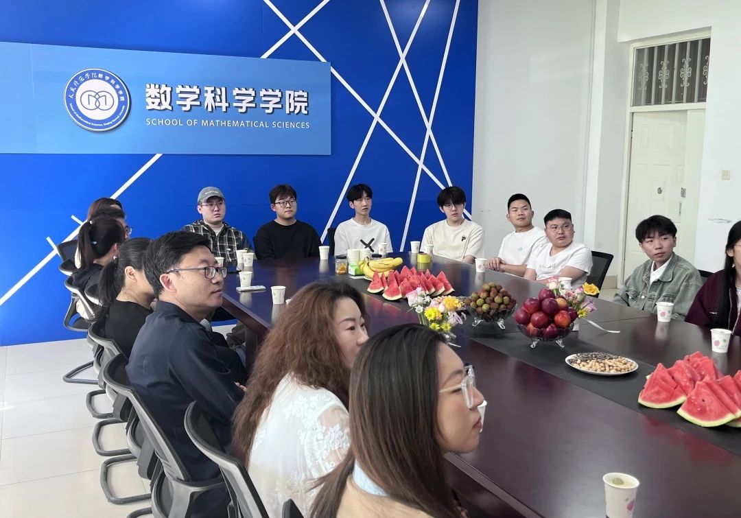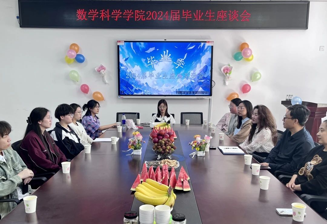 座谈会上气氛和谐融洽,毕业生们一边吃着学院老师提前准备好的水果零食,一边谈论着对大学四年时光的回忆与对未来的向往和规划。各位领导老师也对他们的未来提出长远的建议和祝福。书记燕明辉提醒同学们要未雨绸缪,认清自己的优势,看清社会的竞争,坚定自己的目标。经理高扬建议同学们在进入社会以后努力工作的同时也要抬起头观望眼前的路。副经理沙元霞勉励同学们无论前路如何,都请保持对知识的渴望,对真理的追求,对美好生活的向往。副经理乔兴真心的祝愿各位同学能在未来的道路上,继续发扬数学精神,严谨求实,勇于创新。使人生如同数学公式般精确而美好,每一个未知数都能迎刃而解。员工工作办公室主任夏丽娜老师对各位同学恋恋不舍,嘱咐同学们不要忘记数科这个大家庭,无论未来遇到什么困难,老师这里都会是你们可以憩息的港湾。毕业生们一阵感动,将各位领导老师亲切的叮咛与祝福当作人生珍贵的财富铭记于心。
