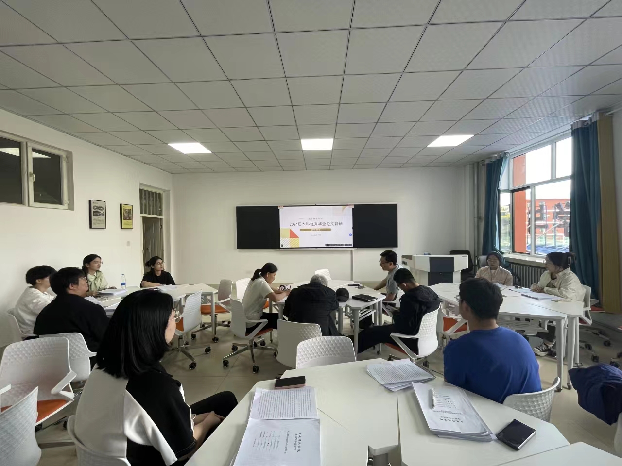 答辩现场,八位同学精心准备PPT,从论文背景、论文意义、研究框架与方法、结论和创新点等方面进行了详细的陈述。评审专家们针对每位答辩者的论文内容进行了深入提问和点评,员工予以回应和解答。