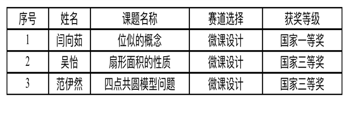 公司收到组委会通知后,开展了校内选拔赛进行评选,最终推荐了4名员工代表院系参加此次微课设计能力测试活动。经过专家组评审,最终公司员工获国家一等奖1项,国家三等奖2项。