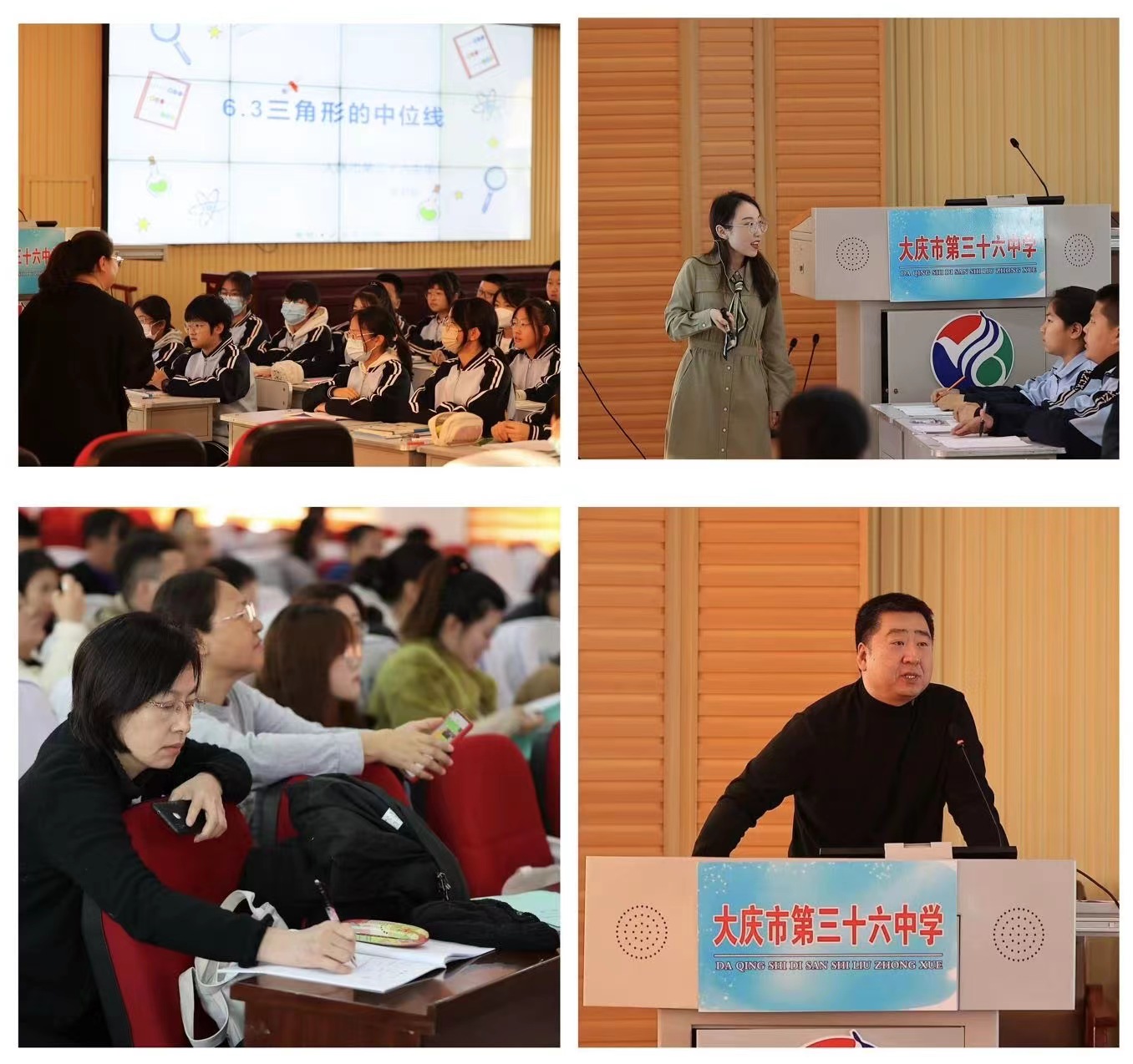 上午第一节课执教的是初一学年的于泳波教师,对于《绝对值》的新授课中,于老师赓续大庆市第三十六中学教学传统,在课前采用提前布置预习视频、导学案、任务单展开一节新课的教学,让学员们刷新了对一节新授课教学设计的认识。初二学年的梁丹老师以将军饮马的情境教学讲课方式,为学员们呈现了一节最短路径问题的专题课。通过这节课的讲解,今后对于数学领域中运用大单元情境教学的设计对学员们有很大的帮助。在初三学年富有多年教学经验的温莉姣老师为大家带来的是三角形中位线新授课,这节课充分体现了数学教学中小组合作的重要性。最后由三十六中老师与国培学员们共同开展了教学研讨活动。