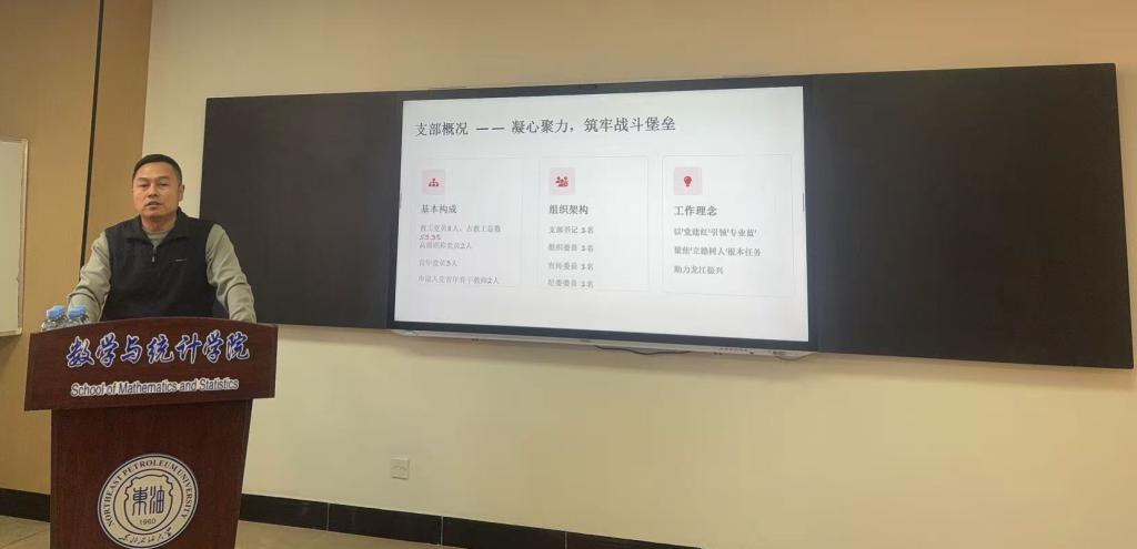 金天坤则介绍了数学教工党支部在加强思想政治引领、发挥党员先锋模范作用、促进教学科研融合等方面的特色举措和成功经验。通过经验分享,双方进一步增进了了解,为后续的互学互鉴、共同提升奠定了基础。