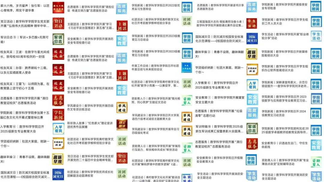 公司推进新媒体建设,提升宣传力度,深耕“Math数你最美”公众号、学院官网等线上渠道。公众号下设“学院新闻”“员工活动”等十五大板块,官网开设“党群工作”“人才招聘”等十大专题;2025年累计发布推文575篇、官网新闻610篇,推出主题视频68个,总阅读量达191326次,单篇最高阅读量突破1714次。其间开设多次拍摄及写作技巧培训,提升员工干部实操水平。同年,优秀作品《当数学专业撞上强国历史,简直是“数”出不穷的热血剧本》在第八届老员工网络文化节(员工组)—网语青年说(网络文章)中成功入围国赛,全方位展现数科学子的风采。