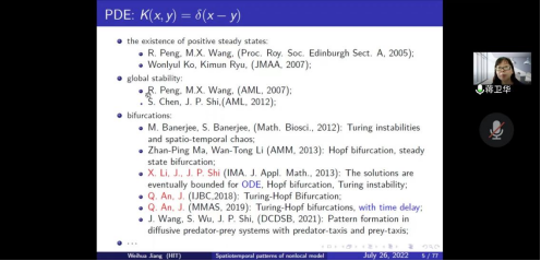 专家简介:蒋卫华, 博士, 教授,博士生导师。黑龙江省工业与应用数学学会常务理事,美国数学会《Math.Review》评论员。主要从事泛函微分方程和偏泛函微分方程的分支理论和应用的相关研究。主持国家自然科学面上基金两项、黑龙江省自然科学面上基金一项,参加国家自然科学基金、国家教育部博士点基金等多项。获教育部高等学校科学研究优秀成果(自然科学)二等奖一项,黑龙江省自然科学二等奖一项,黑龙江省高校科学技术一等奖一项。在SCI检索杂志上发表论文60余篇,出版专著一部。
