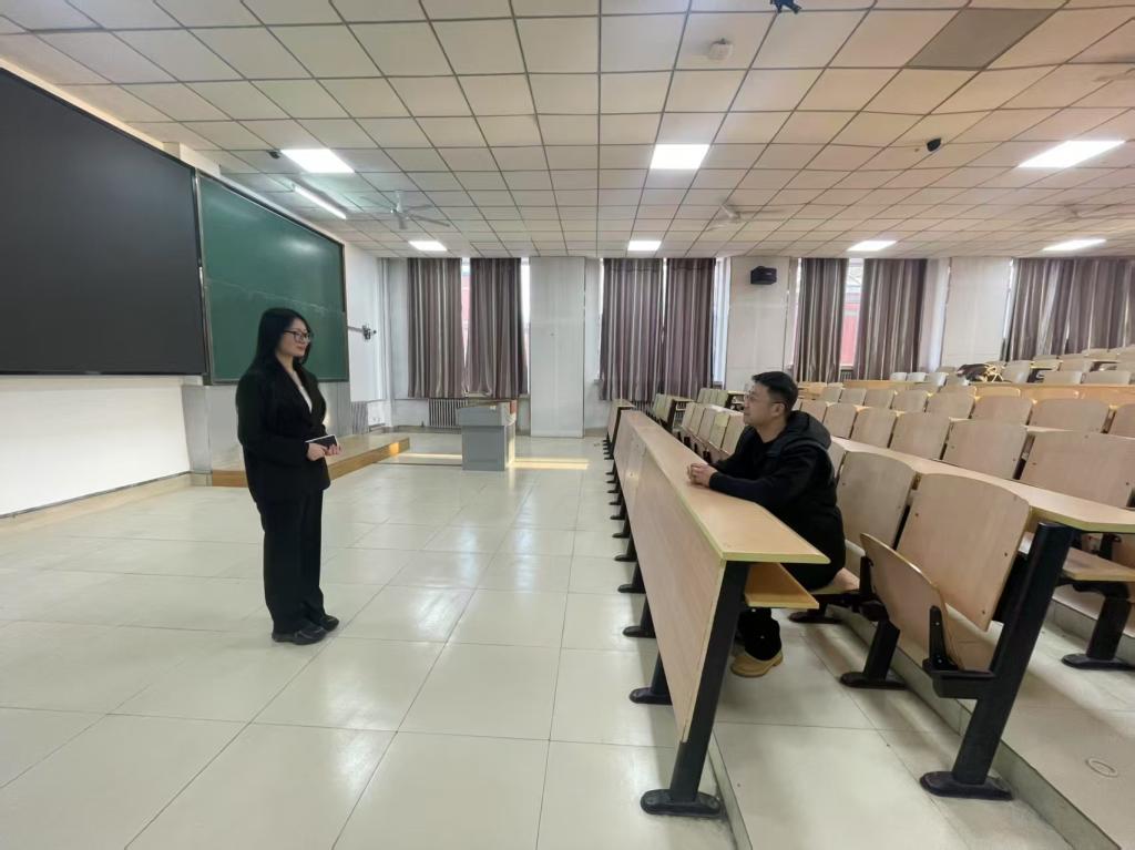 为深化师范生培养改革,提升数学与应用数学专业员工的教学实战能力,4月10日-4月16日期间学院邀请大庆市景园中学王孝阳、大庆市三十六中梁丹两位老师走进大学校园,通过“理论指导+实战打磨”双轨模式,为2022级数学师范生开展讲课能力指导。通过引入中学一线教学资源,让师范生在校期间即接触真实教学场景,帮助员工掌握新课标背景下的教学设计、课堂互动及学情分析技巧。首批指导的6名师范生分组进行微型课试讲,中学名师逐一“把脉问诊”。针对员工李欣怡在《勾股定理》试讲中“课堂活动不充分”,郎美平在《二次函数的图像》试讲中“引入不自然“等问题给出具体指导,并建议:“要根据初中生的认知特点,用阶梯式问题引导探究,避免直接灌输结论。”