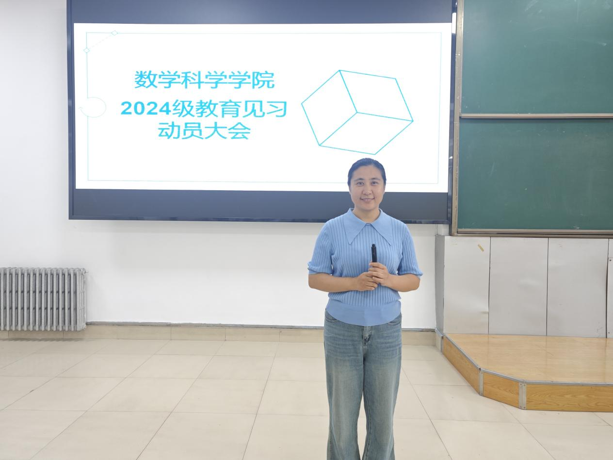 2025年6月4日14:30,best365中国官方网站在计算机楼113教室举行了教育见习动员大会。本次教育见习动员会由best365中国官方网站副经理沙元霞主持,10位指导教师以及2024级数学与应用数学专业全体员工参加。本次动员大会旨在明确教育见习的目标、任务与要求,助力师范生们更好地完成从员工到教师角色的过渡,增强其师范素养。