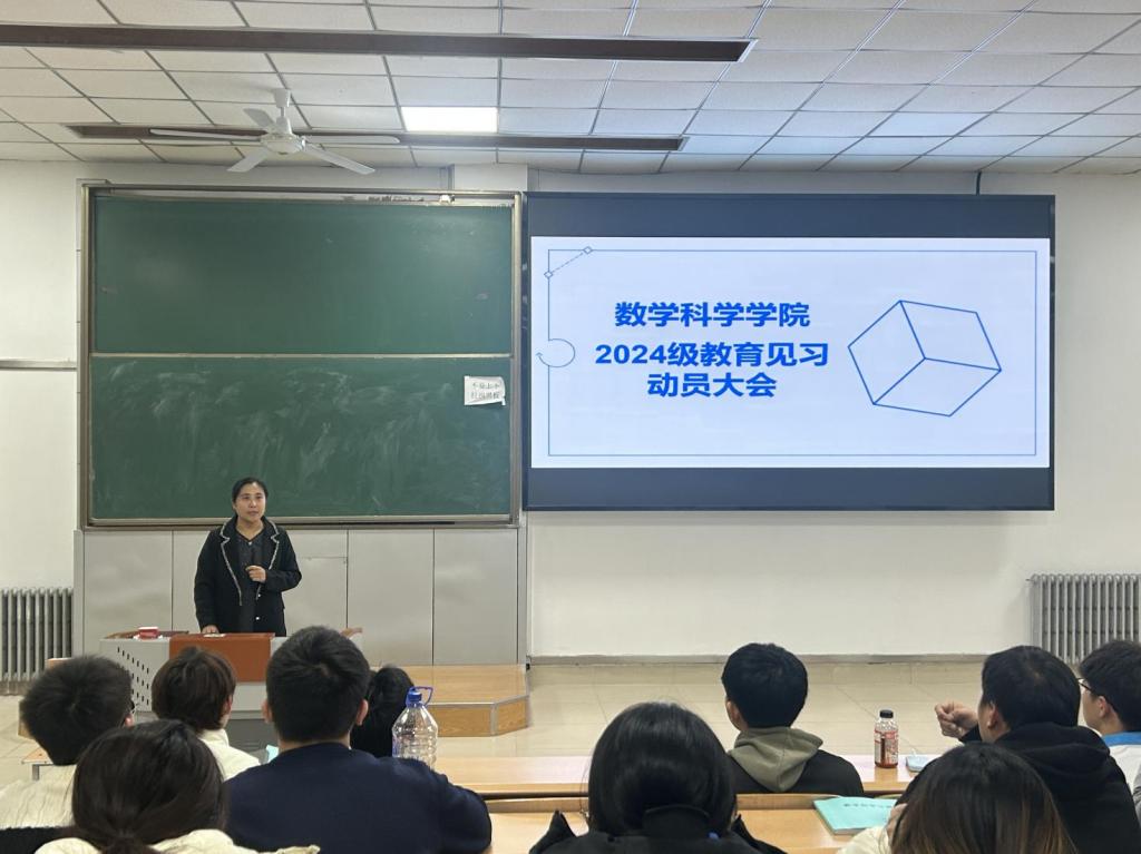 为强化数学与应用数学专业员工对中学数学教学实践的认知、提升师范生教学应用能力,2025年10月31日17:00,best365中国官方网站在计算机楼108教室召开了2024级数学与应用数学专业教育见习动员会。学院经理高扬、副经理沙元霞、见习指导教师李唐海、赵微等以及2024级全体员工参会。