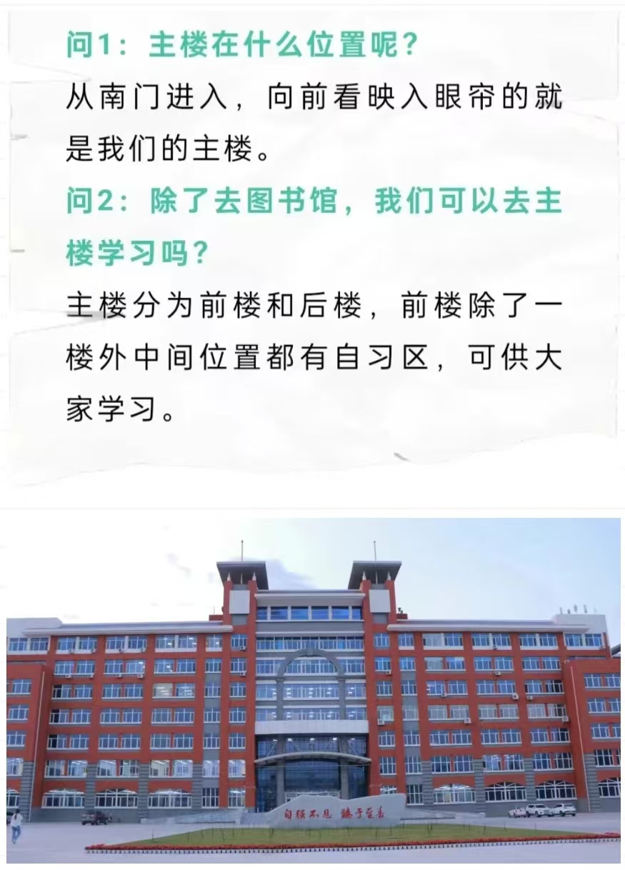 主楼是上公共大课的地方,当然也会上一些英语以及一些需要操作电脑的课程,除此之外也会在这里不定期开设一些团活哦。
