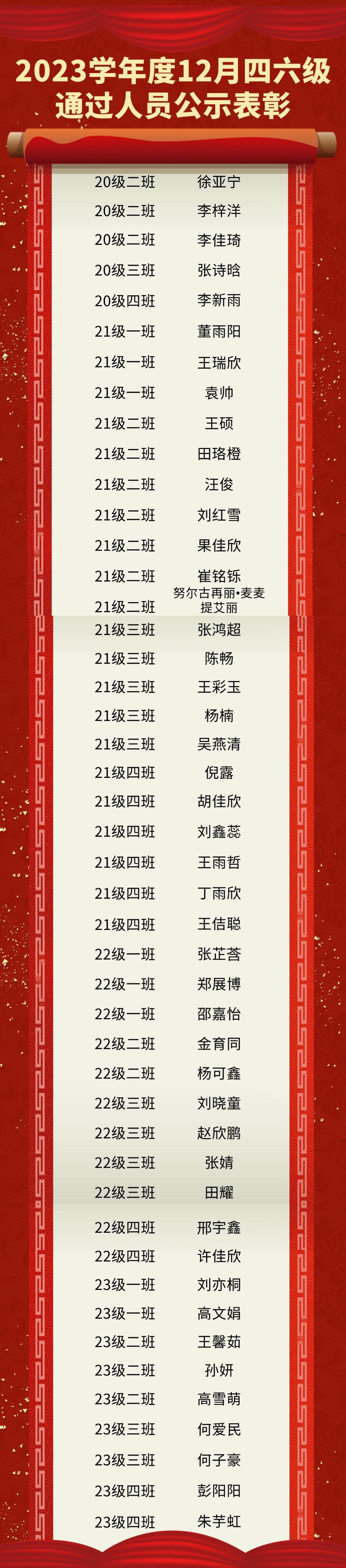 以下为通过四六级人员名单: