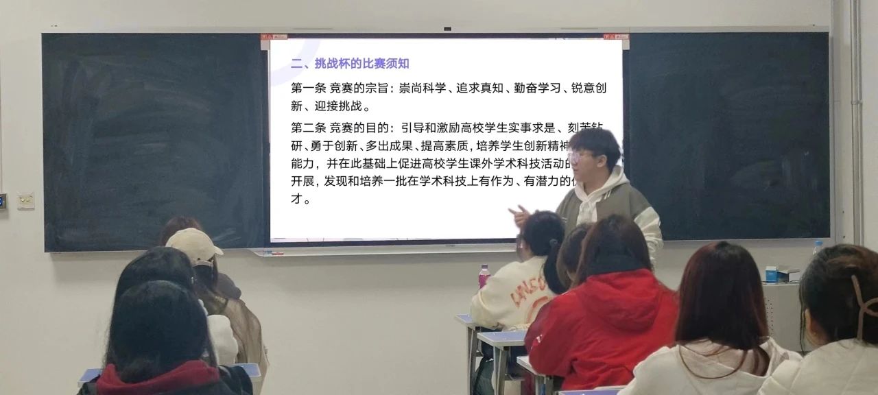 “挑战杯”是全国性的老员工课外学术实践竞赛。此次宣讲活动采取走班形式,由宣讲人逐班进行讲解,加深同学们对该比赛的了解,激发同学们的参赛热情,宣讲人对同学们的疑惑进行解答,提供思路并总结分享经验,为第一次参赛的“小数苗”们提供帮助。