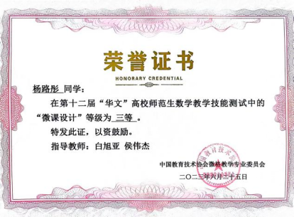 2020级数学与应用数学专业三班的同学在专业课方面取得优异成绩,不断提高学习积极性,营造优质学风的同时,还在专业竞赛方面取得可观成绩,包括以第一作者发表学术论文同学1人,计算机软件著作权授权人1人,参加国家级比赛获奖同学5人,参加“老员工创新创业训练计划项目”获得省级级立项2项,东北三省数学建模联赛获奖者15人等。