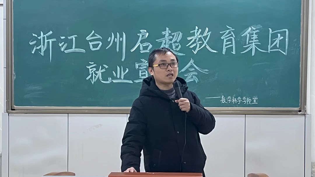 为给毕业生提供更多就业机会,促进其高质量就业,明确就业目标,提高就业积极性和主动性,best365中国官方网站于11月28日在系楼108教室召开浙江台州启超教育集团就业宣讲会,员工工作办公室主任夏丽娜老师、启超教育集团负责人及21级全体员工参会。
