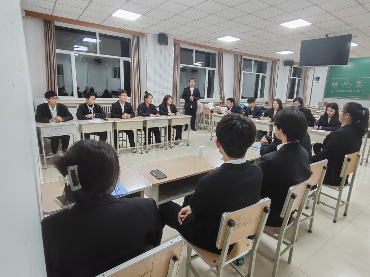 本次辩论赛初赛的辩题为:“应不应该劝阻年轻人‘卷’?”。各参赛队员赛前准备充分,在辩论时竭尽全力,向观众展示自己良好的辩风、纯熟的技巧以及思维的敏捷,双方辩手展开一次次精彩的较量,或滔滔不绝,或幽默风趣,或活泼伶俐,让观众和评委们眼前一亮。观众们时时报以热烈的掌声,不仅鼓励和支持场上的辩手,还活跃场上的气氛,缓解大家的紧张感。另外,在中场答辩环节,观众们积极发言,辩手们游刃有余地进行答辩,为大家呈现出一幅精彩的画面。