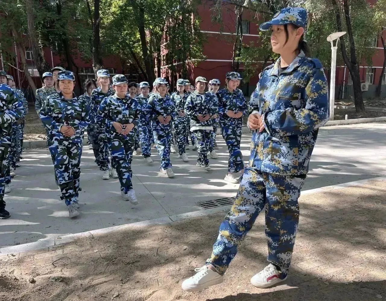教官认真指导,队伍整齐划一,“小蓝人”们严格服从命令,完成军姿、踢正步等训练项目,他们英姿飒爽,神采飞扬。
