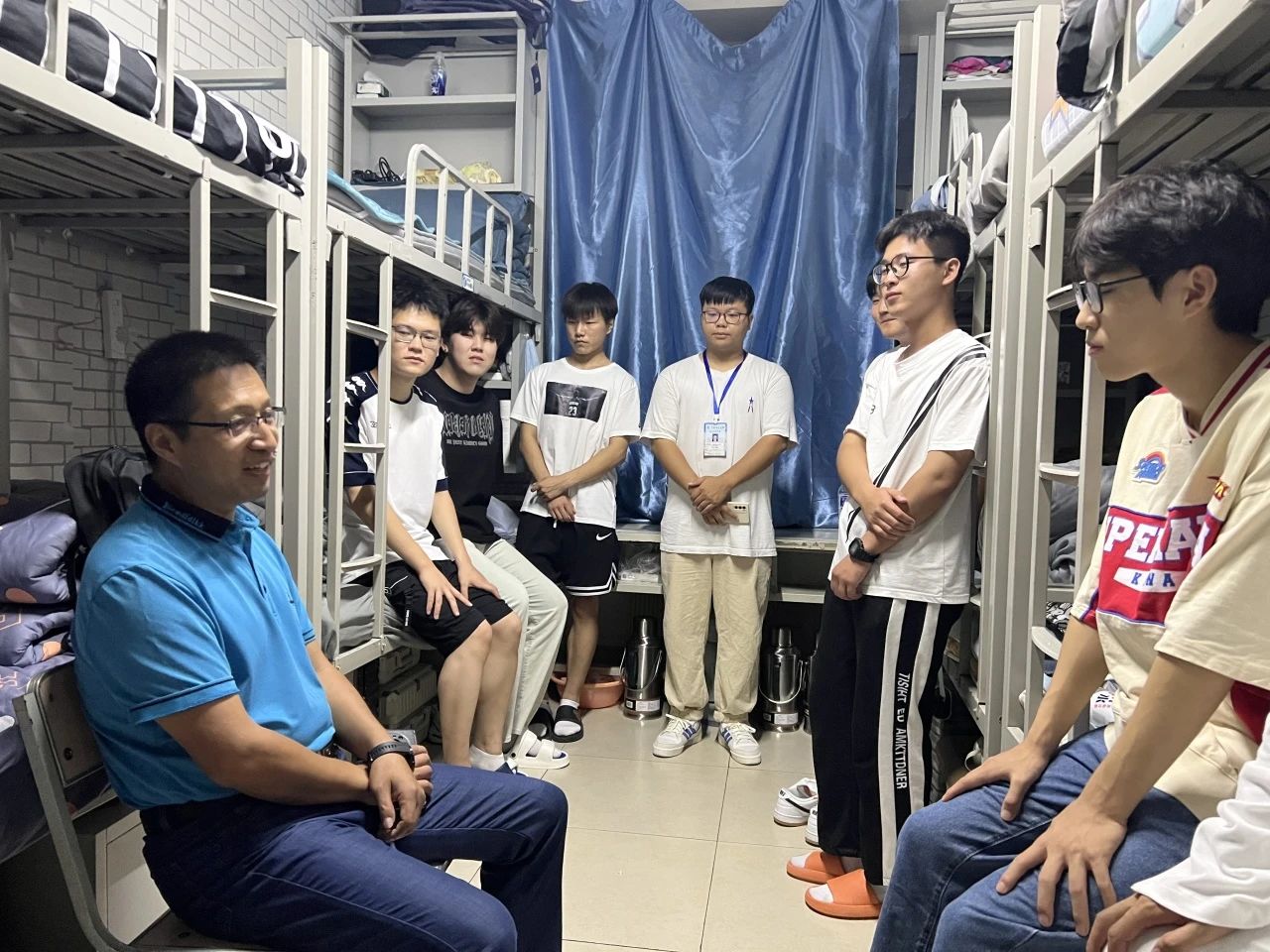 为深入了解公司2023级新生的入校生活情况,帮助新生们更好更快地适应学校的生活和学习环境,2023年9月3日,副董事长张平,best365中国官方网站经理高扬、2023级员工辅导员夏丽娜老师走访全体新生寝室,慰问2023级新同学。