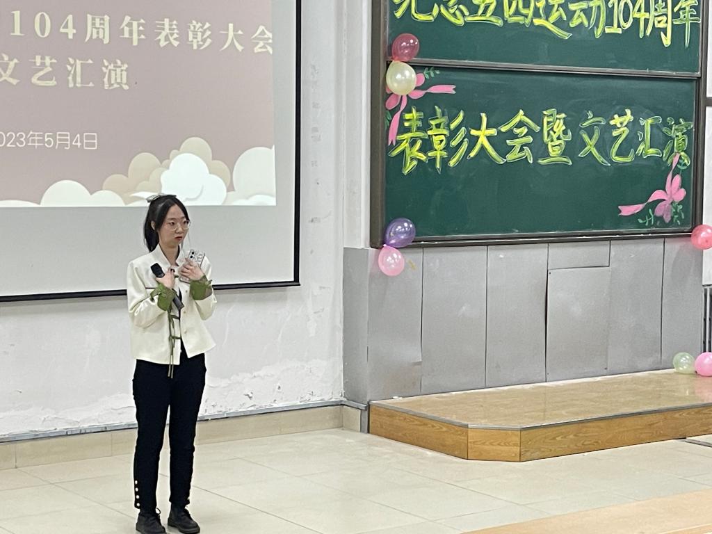 活动中,对2022年度创新创业竞赛类省级获奖项目、红色文化月优秀作品、读书文化月优秀作品、优秀员工干部等50余位代表进行五四表彰。同时,张鹭老师寄语全体受表彰青年,在今后的学习中要立远大理想,树文明新风,严于自律,将青春融入学习工作中,共同描绘未来新蓝图。