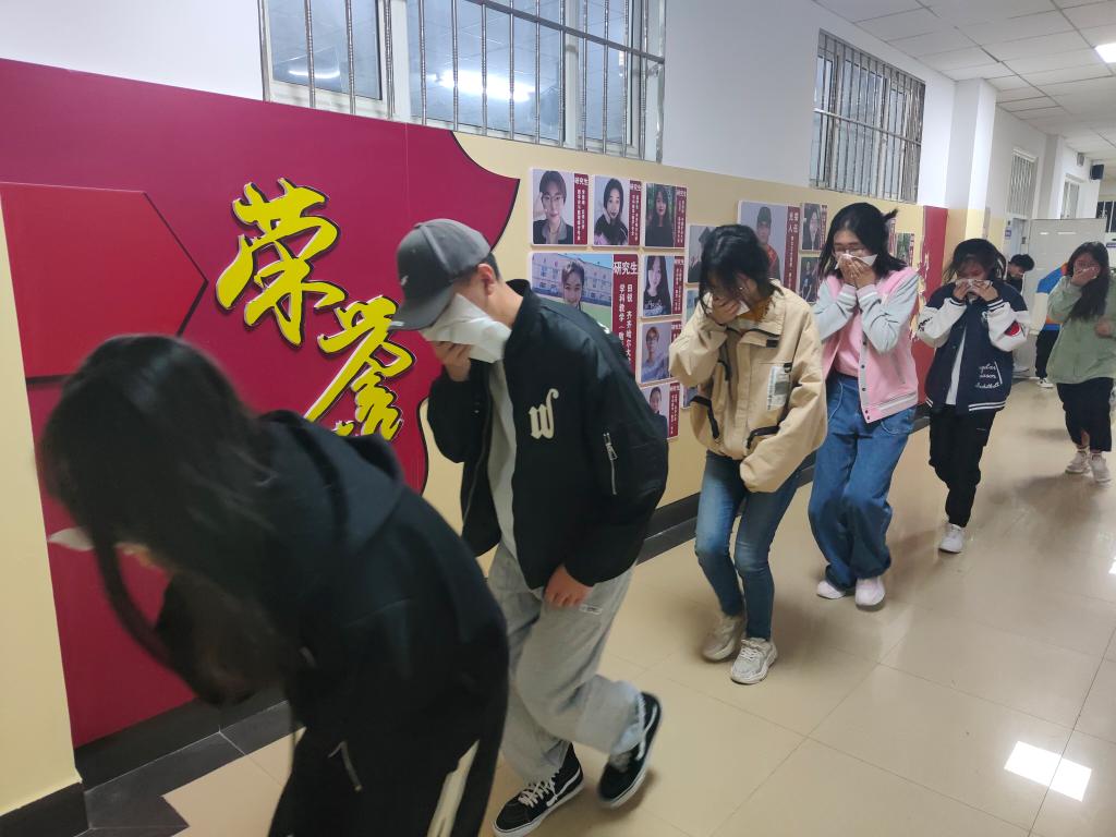 一声急促、刺耳的警报声拉开了本次消防疏散演练的帷幕。同学们弯腰、捂住口鼻,沿着学院指定的逃生路线,快速有序撤离到安全地带。整个过程有条不紊,忙中有序,快速地完成了疏散,最后以3分钟的时间快速在指定安全区域集合。