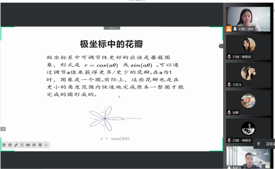 为了展现数学美的多样性,21级数学三班的王彩玉,通过对数学分析极限的讲解,展现数学学习中的浪漫。