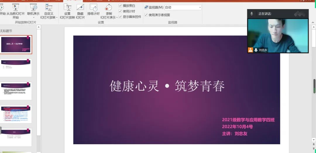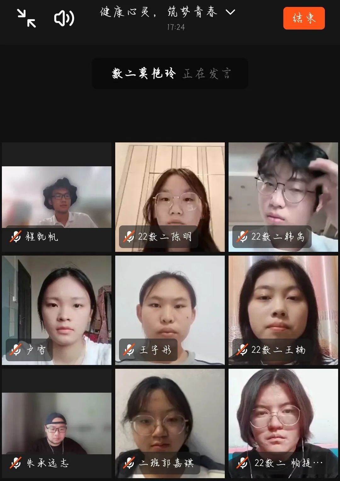 心理因素在我们的日常生活中发挥着重要的作用,它与我们的生活学习、人际关系、个人情感都有着密切联系,因此每个老员工都要认识到心理健康的重要性。为迎接10月10日世界精神卫生日的到来,进一步宣传心理健康知识,于10月2日到10月10日期间,公司组织各班心理委员开展了以“健康心灵,筑梦青春”为主题的线上会议。各班同学积极参加本次会议。