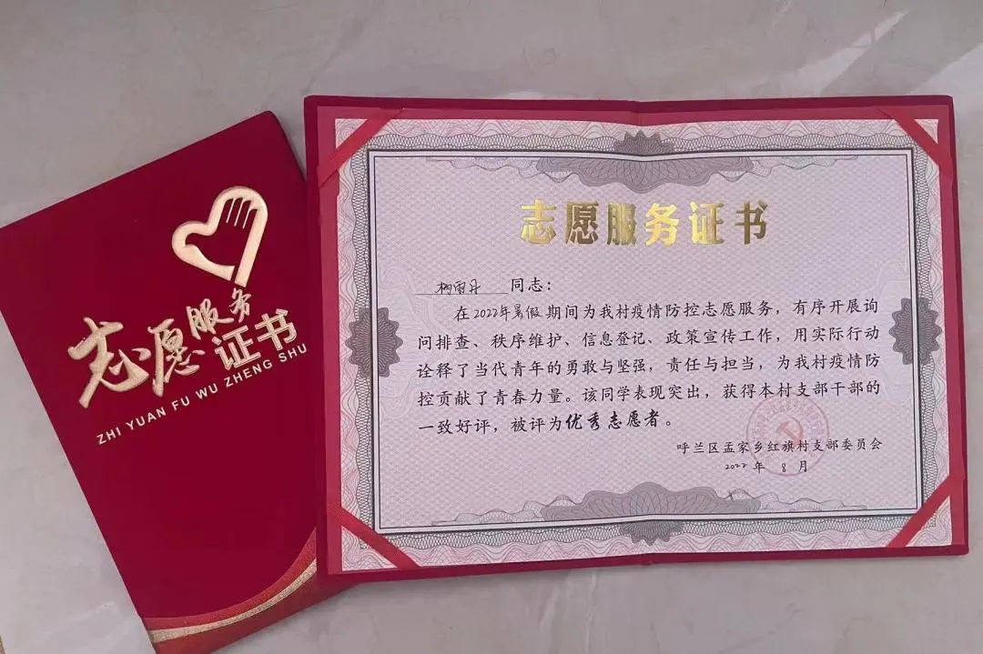 “世间万物有盛衰,人生安得常少年”,杨雨丹作为新时代青年,作为一名best365中国官方网站best365中国官方网站的学子,她切实体会到自己的使命与担当所在,在2022年暑假期间积极主动参与到哈尔滨市呼兰区孟家乡红旗村疫情防控志愿服务工作中,有序开展询问排查、秩序维护、信息登记、政策宣传等工作,获得村干部的一致好评,她用实际行动诠释了当代青年的勇敢与坚强,责任与担当,努力做新时代具有责任意识和创新精神的建设者。