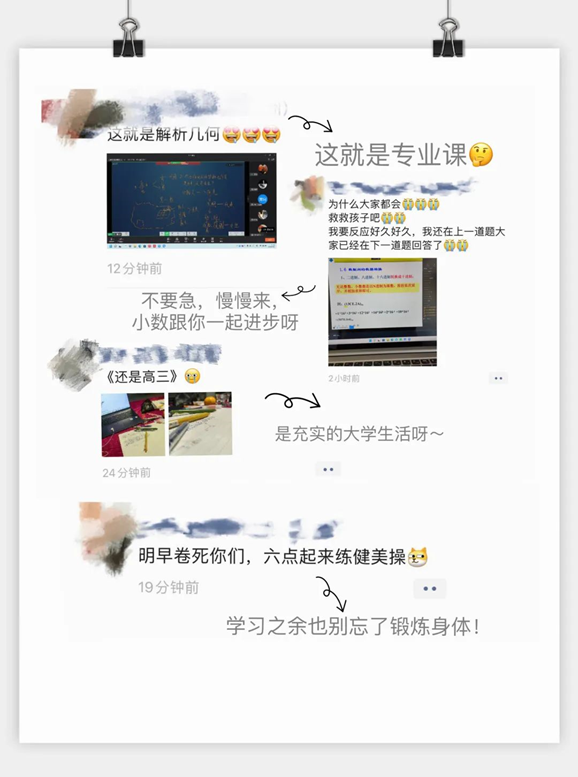 刘碧琪:老师还是挺有趣的(排球老师叫我们“弟子”)。辅导员老师对我们很好,我是大庆的,张鹭老师还来问我是否被隔离,很暖心。(还有就是运气太好了,全院的大课我被抽到回答了!)
