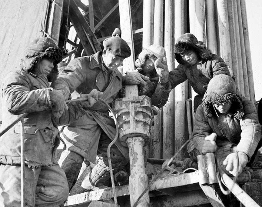1964年春节期间,作家慰问团、新闻采访团的作家、记者们冒着零下40多度的严寒到冰上采访铁人。工人们对老队长说“大队长,咱钻井队又蒸出一个大白馍馍!”