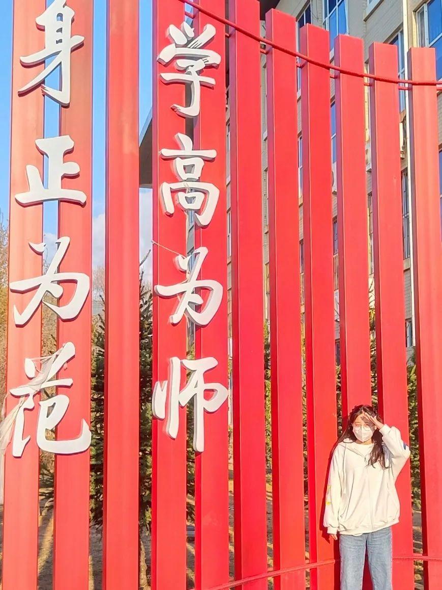 踏进校园的大门,主楼蔚然耸立,石墩上的“自强不息,臻于至善”是对我们的期望!一侧的王进喜像,在春日的照射下,注视着每一个庆师学子!