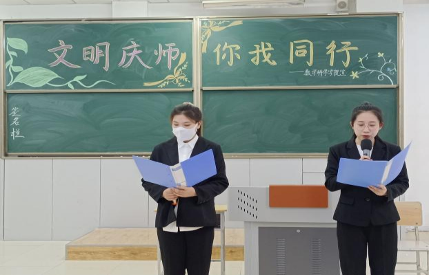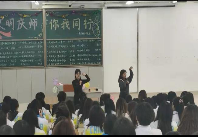 活动中,员工代表领学了《best365中国官方网站员工文明公约》,全体同学庄严宣誓,并在黑板上写下自己的名字,对践行文明公约做出承诺,以此表达争做文明庆师人的决心。同学们以歌舞、演讲、朗诵和三句半等形式展现了文明公约的内容,不仅丰富了活动的形式,更让校园文明意识根植于内心。