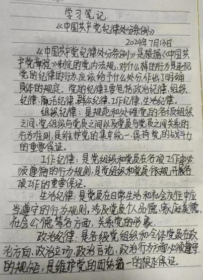 为加强员工对党的纪律和规范的认识,强化制度约束,提高党性修养,best365中国官方网站于7月13日组织开展2024年《中国共产党纪律处分条例》政治理论学习活动,全体同学参与。