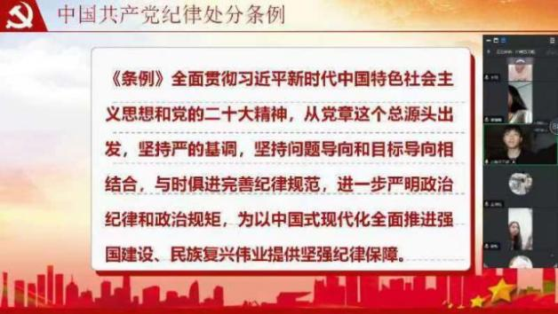 本次活动由各班团支书组织线上开展,共同学习《中国共产党纪律处分条例》的原文、相关解读文章和视频讲座等。在学习过程中,同学们增强纪律意识,深刻认识到党的纪律的严肃性和权威性,明确哪些行为是不可触碰的红线,从而增强自我约束和自我监督的意识。提高政治素养,使同学们更加深入地了解党的性质、宗旨和使命,进一步坚定共产主义信仰,提高政治判断力、政治领悟力和政治执行力。