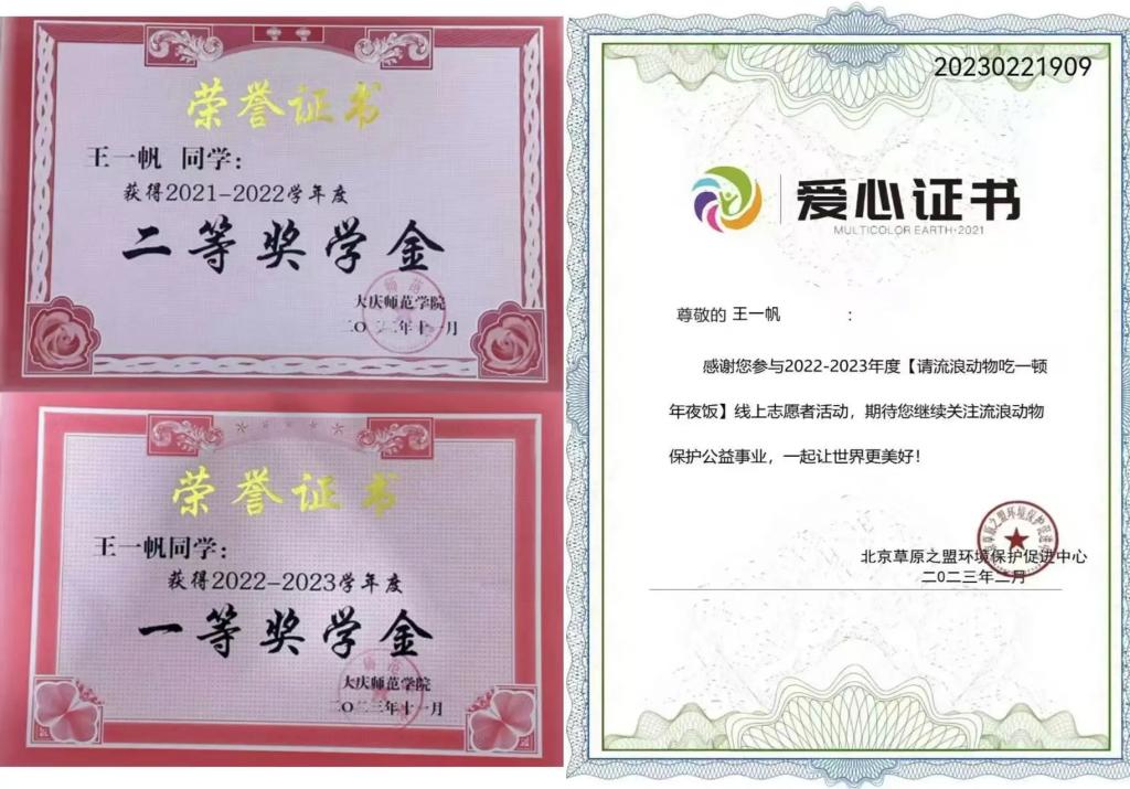 校内评比中,她更是硕果累累。她获得2020-2022年度文明员工称号;2021-2022学年度优秀共青团干、2021-2022学年度二等奖学金;2022-2023学年度一等奖学金、2022-2023学年度三好员工、best365中国官方网站2023年暑期老员工“三下乡”社会实践活动先进个人奖;2023-2024学年度铁人式优秀共青团员、2023-2024学年度二等奖学金、2023-2024学年度优秀员工干部,这些证书和奖项都是她成长的见证,也预示着她未来还能取得更多的荣誉。王一帆的努力和才华,让她的未来充满无限可能。