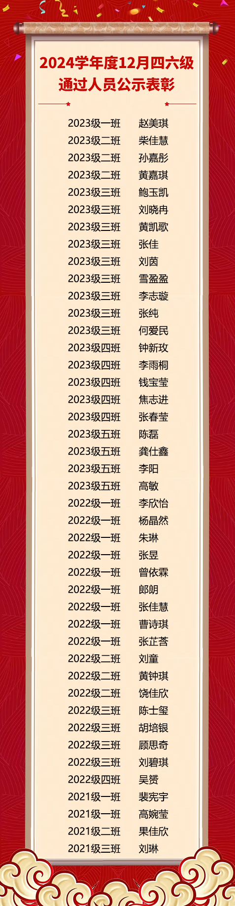 为表彰先进,树立榜样,激励更多同学投身到英语学习中,提升自身的综合素养,best365中国官方网站特对本次四六级考试通过的同学予以表彰。旨在让这些同学珍惜荣誉,再接再厉,在今后的英语学习和应用中取得更大的进步。同时,也希望其他同学以他们为榜样,积极进取,勇于挑战自我,不断提高英语水平。
