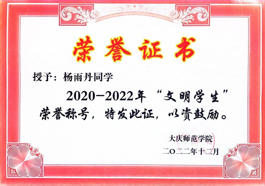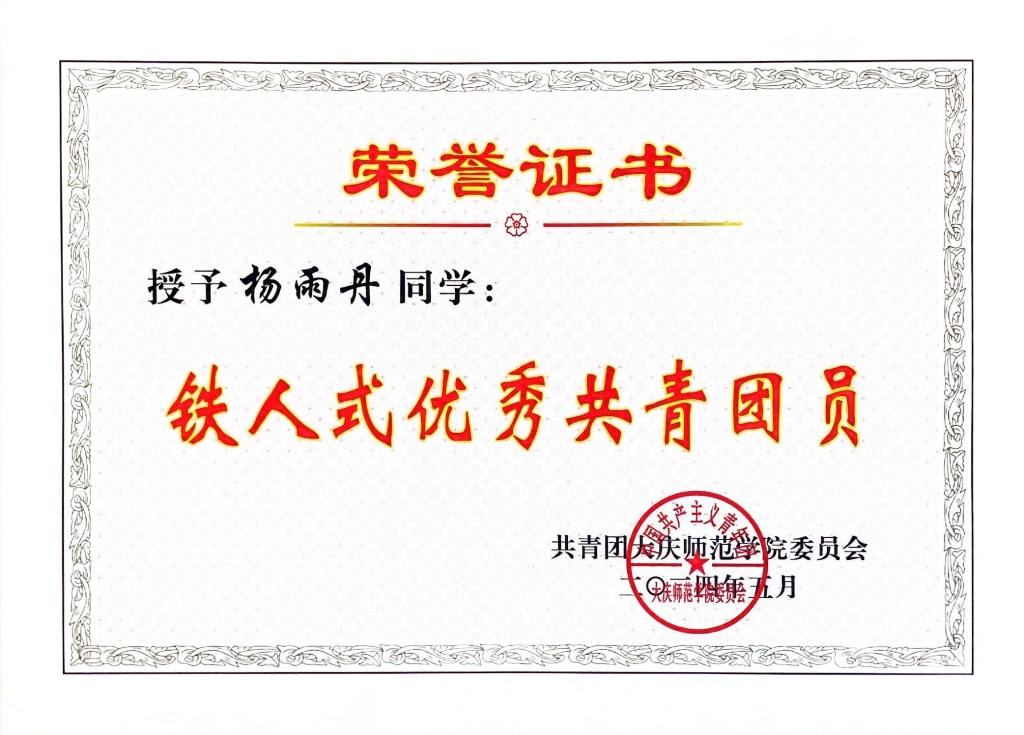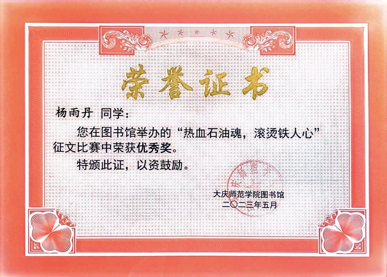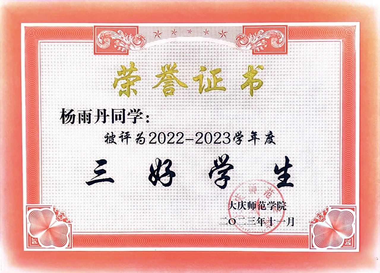 “世间万物有盛衰,人生安得常少年”。作为新时代青年,她积极弘扬和传播中华民族精神,努力用自己的青春书写中国青年新篇章。始终以“自强不息,臻于至善”的校训作为自己的行动指南,时刻以大庆精神(铁人精神)作为自己奋斗目标。日后的学习中她将以高质量、高标准完成余下的学习任务的基础上,扎根教书育人事业,争做最美的基层人民教师,书写青春绚丽华章!