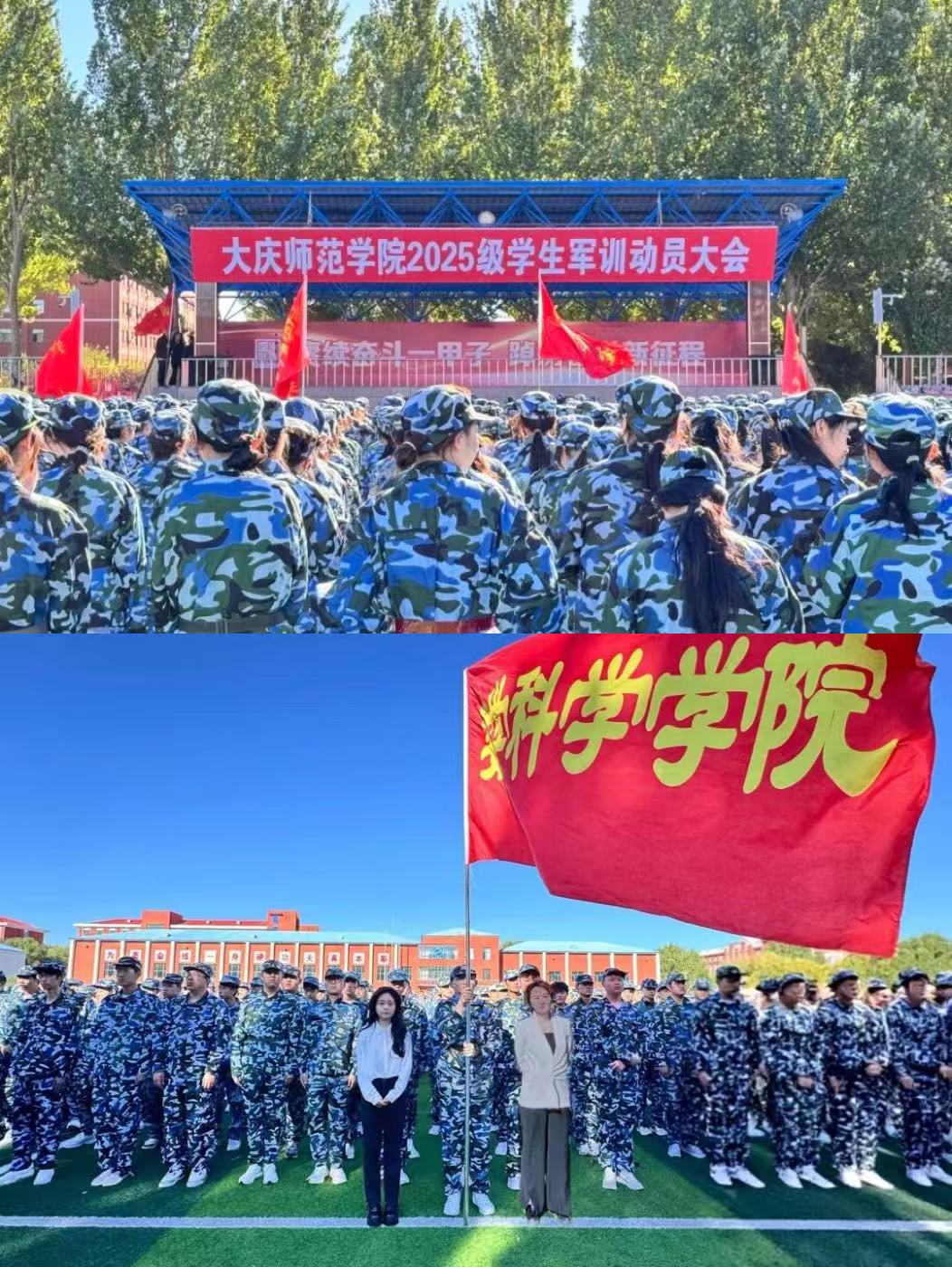 迎着清晨第一缕阳光,集合哨声准时打破“新手村”的宁静——上午8:30,属于2025级新生的军训“成长副本”,正式迎来首个关键环节:军训动员大会,此环节由员工工作办公室主任夏丽娜和新生辅导员闫炎陪同玩家们共同进行。