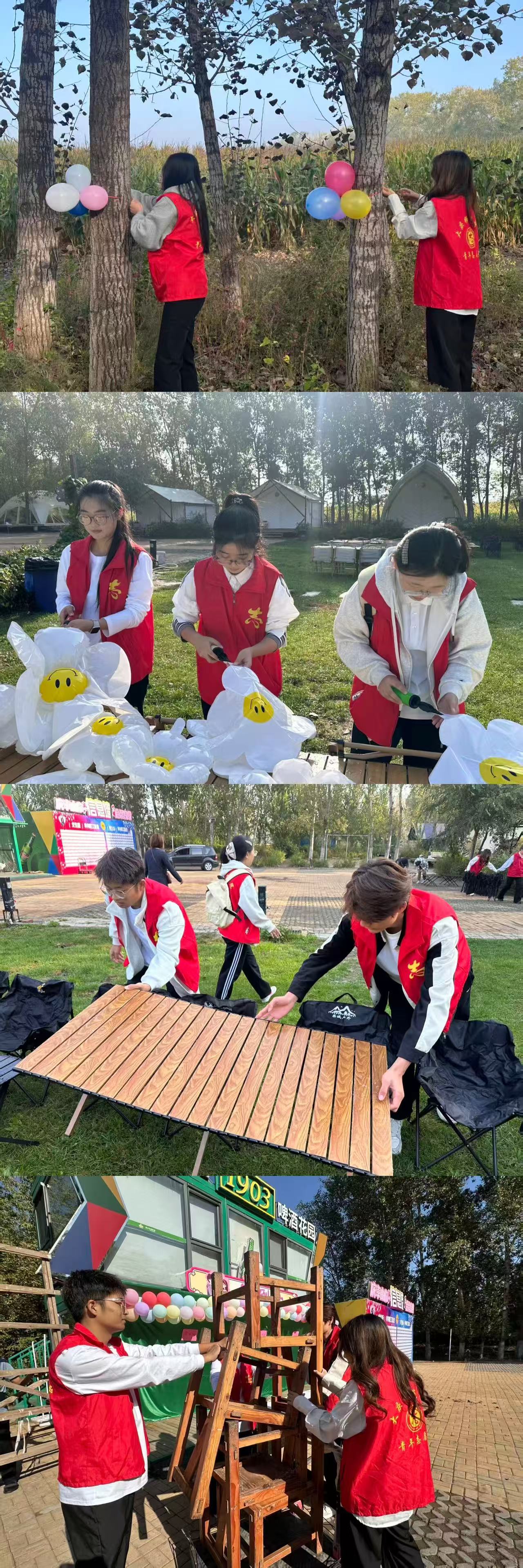 活动筹备阶段,志愿者们分工明确、干劲十足,迅速投入到各项繁杂的准备工作。抬运桌椅时,大家相互协作、配合默契,精准将桌椅摆放至指定区域;绑扎气球环节,志愿者们耐心细致,色彩鲜艳的气球在手中逐渐串联成精美装饰品,让活动现场氛围愈发鲜活。