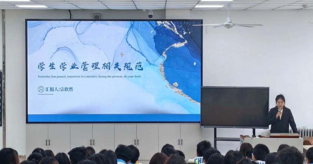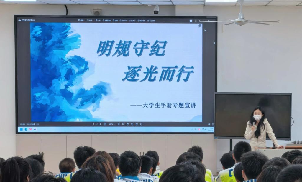 活动现场,三位主讲人以“精准解读+互动研讨”形式系统传递校园规范。宗欣然聚焦学业管理,不仅细致阐释员工权利义务、成绩考核及重修等核心规则,还补充奖助学金申报具体细节;同时分享三食堂意见反馈渠道,引导员工主动参与校园建设。李奕涵则围绕学籍管理核心要点,讲解转专业、休学复学等关键内容,针对转专业热点发起互动研讨,并补充“掌握考核标准”“积累竞赛成果”等实操建议;同时结合助学金违规使用反面案例强调诚信义务,明确考试作弊的惩戒后果及对学业发展的不良影响。彭长雄聚焦员工文明公约,从六大场景展开细致解读,以“文明素养需从细节践行”为引导,明确课堂“课前5分钟入场”、寝室“禁用违规电器”等具体要求,通过典型案例让抽象规则具象化。