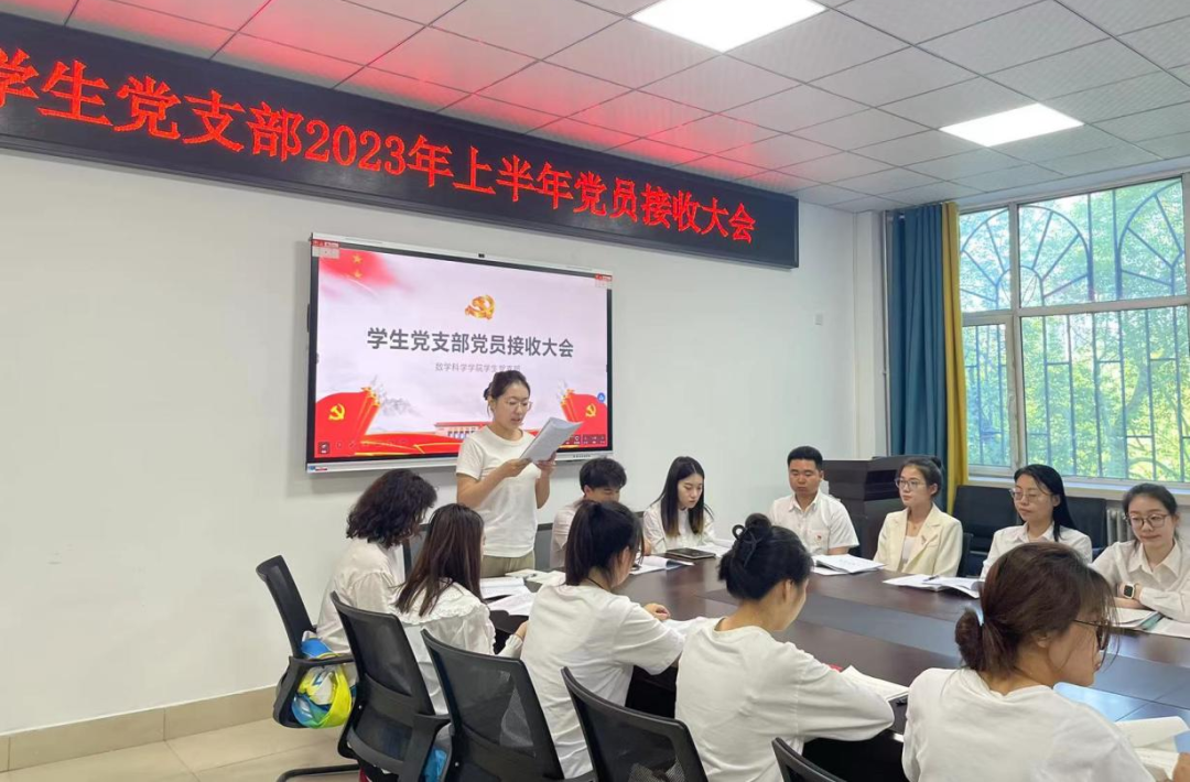 大会进行第一项,讨论接收王理想等八名同学为预备党员。会议严格执行预备党员接收程序,八名发展对象依次宣读《入党志愿书》,目光坚毅,誓言铿锵,随后其入党介绍人向大会报告王理想等八名同志政治思想、学习、生活等情况,并表明同意接收为王理想等八名同志为中共预备党员,组织委员贾连广同志代表支委会报告对王理想等八名同学的审查意见,与会党员同志进行了充分的讨论,对八名发展对象今后的工作学习提出了宝贵的意见和建议,最后通过无记名投票,全票通过,大会一致同意接收王理想等八名同志为中共预备党员。