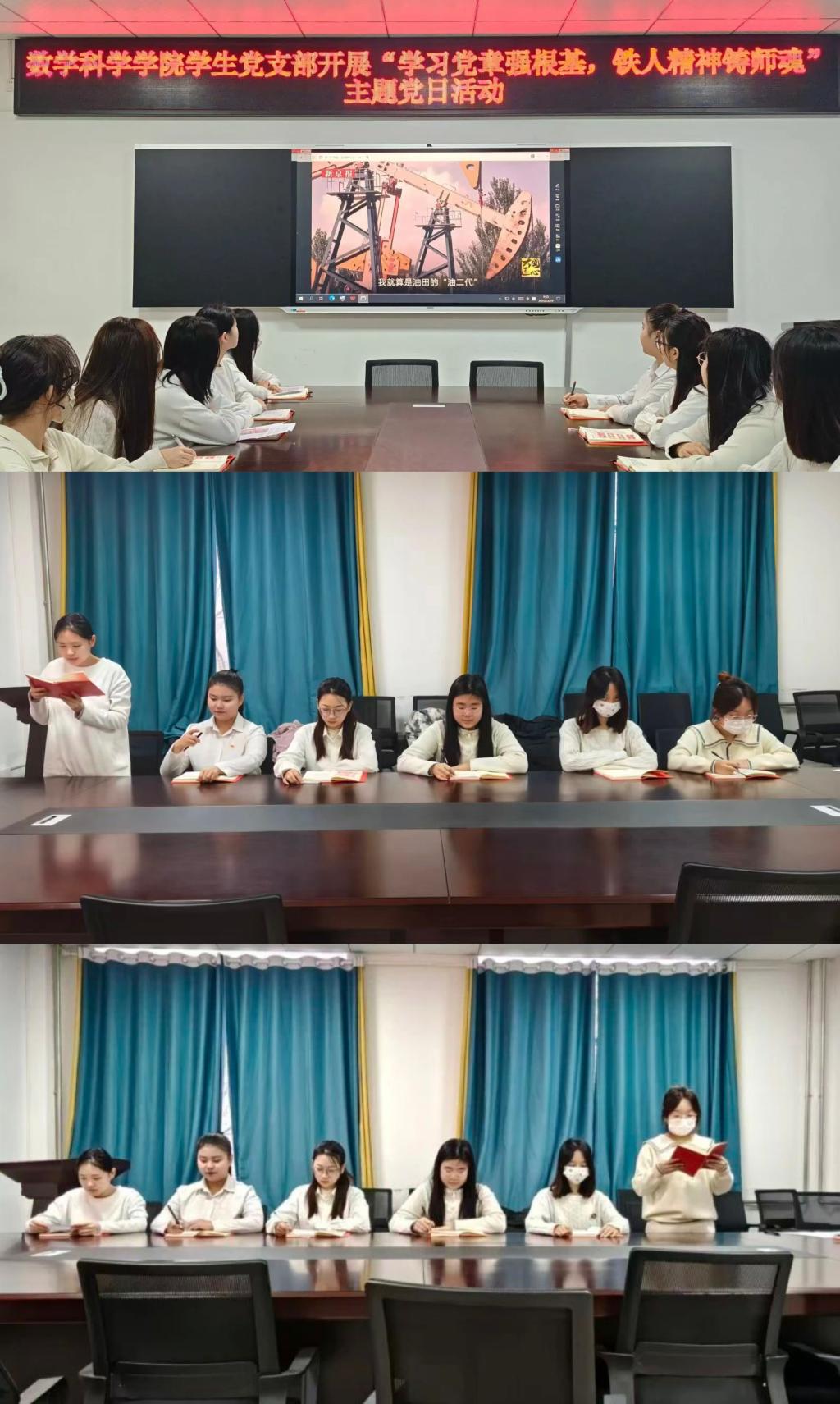 按照活动要求,会前,全体党员已逐章研读《中国共产党章程》,并重点学习铁人王进喜典型事迹材料。会上,夏丽娜聚焦党章中党员义务、权利与纪律要求的核心条款,结合新时代员工党员的使命职责进行深度解读,让党章要求更贴合青年成长实际。随后,全体党员集体重温铁人王进喜“宁可少活二十年,拼命也要拿下大油田”的铿锵誓言,深入感悟其拼搏精神的内涵。大家纷纷表示,铁人精神不仅是石油战线的精神财富,更是全体共产党员在新时代担当作为、攻坚克难的力量源泉。