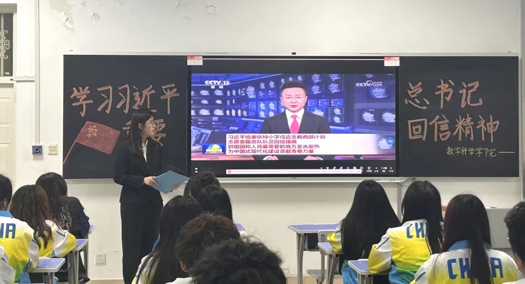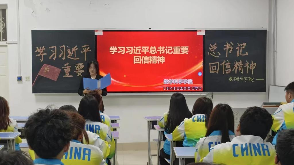 活动伊始,主持人向全体同学深入阐释本次团日活动的重要意义,点明学习回信精神对青年学子成长与国家发展的深远价值,迅速吸引同学们的注意力,营造出浓厚的学习氛围。随后,几位宣讲人依次登台,围绕习近平总书记重要回信精神,结合详实案例与深刻见解,展开精彩宣讲。宣讲过程中,同学们全神贯注,沉浸其中,不少同学认真低头记录要点,展现出对理论学习的高度热情与积极态度。同学们纷纷表示,将努力提升数学专业技能,以实际行动为乡村振兴事业贡献力量。